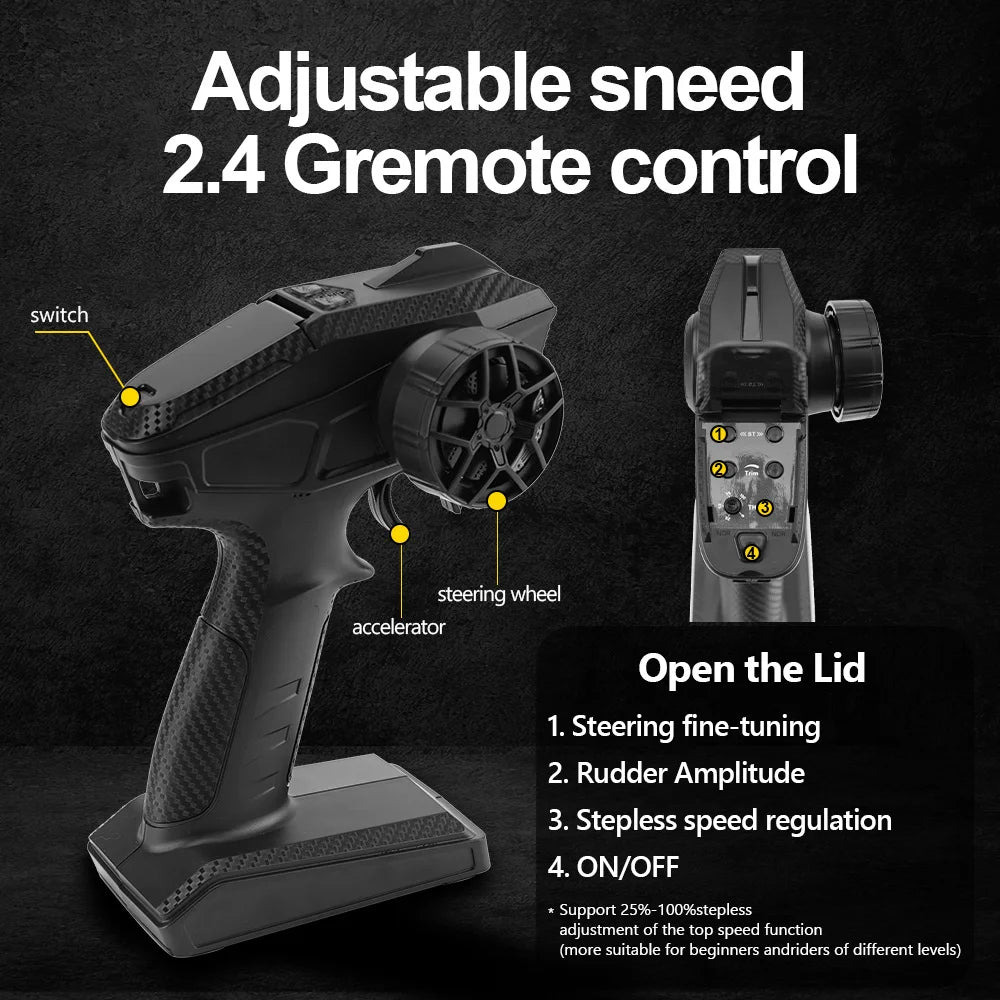 7)Powerful drivetrain: oil-filled all-metal differential with damping, overload limited-slip set CNC steel ruler, steel CVD drive shafts