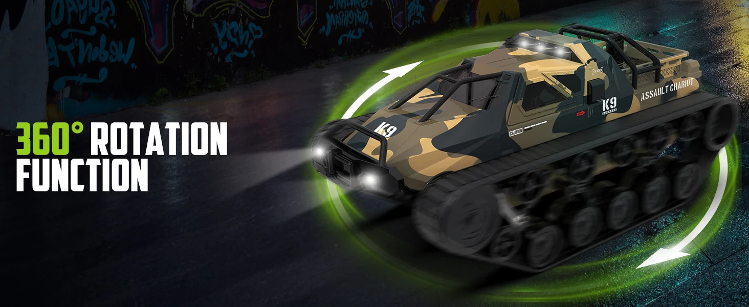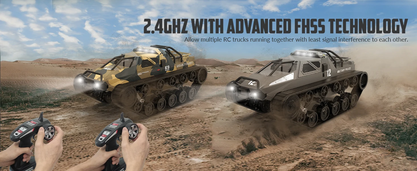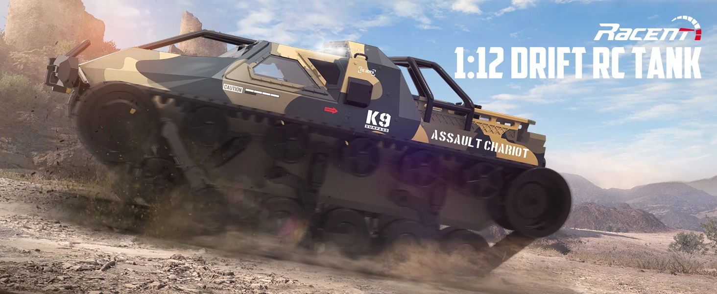 RACENT RC Crawler 1:12 Scale 2.4Ghz Remote Control Tank 4WD 360°Rotating Drifting Car Off-Road All Terrain RC Truck 2 Batteries